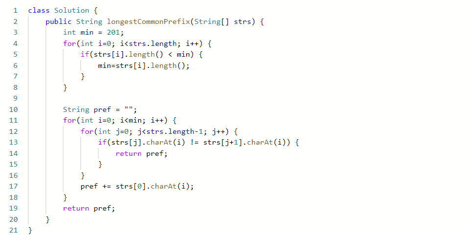 if(strs[j].charAt(i) != strs[j+1].charAt(i)) {
