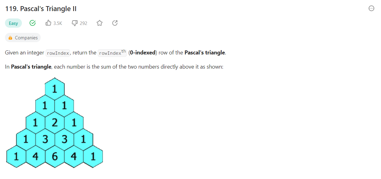 | [LeetCode/릿코드] 118. Pascal's Triangle (0) | 2023.01.24 |