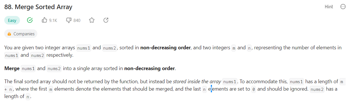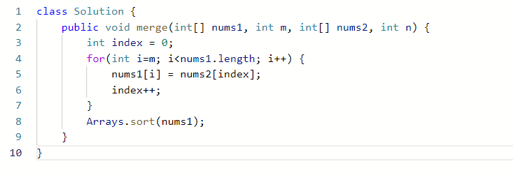 public void merge(int[] nums1, int m, int[] nums2, int n) {